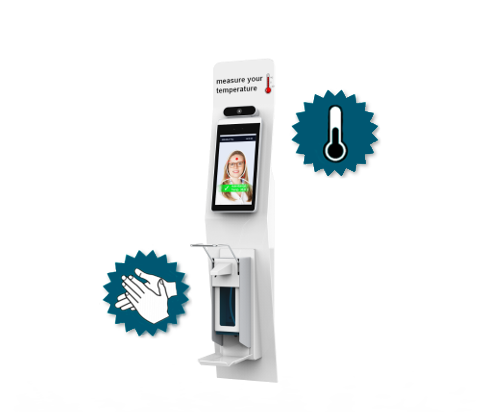 Onze gebruiksvriendelijke self-service zuil stelt de lichaamstemperatuur vast van degene die er voor staat. Dit gebeurt volledig contactloos en automatisch met een infrarood warmte camerasysteem.